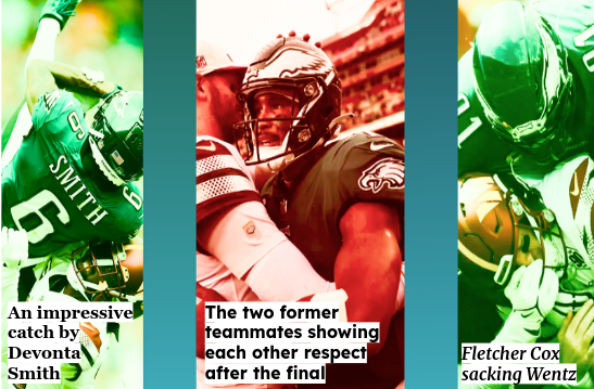 Wentz was sacked whopping total of 9 times! This number of sacks by the Eagles hasn’t been seen since 1991. It also is the most sacks done by a team in the NFL so far. On the Offensive side everything was clicking as the Eagles scored 24 unanswered points. The star of the game is not a doubt DeVonta Smith who had a total of 8 receptions going for 169 Yards and 1 touch down. Jalen Hurts has also shown to be a threat as he threw for over 340 Yards including 3 touch downs.