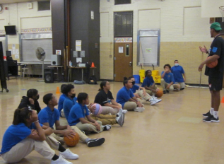 For basketball, we have Mr. Andrew Young or Mr. Drew for short. In basketball we start off easy with simple dribbling moves and shooting drills. Sometimes kids in ASAS get to play against each other like races and shooting competitions.