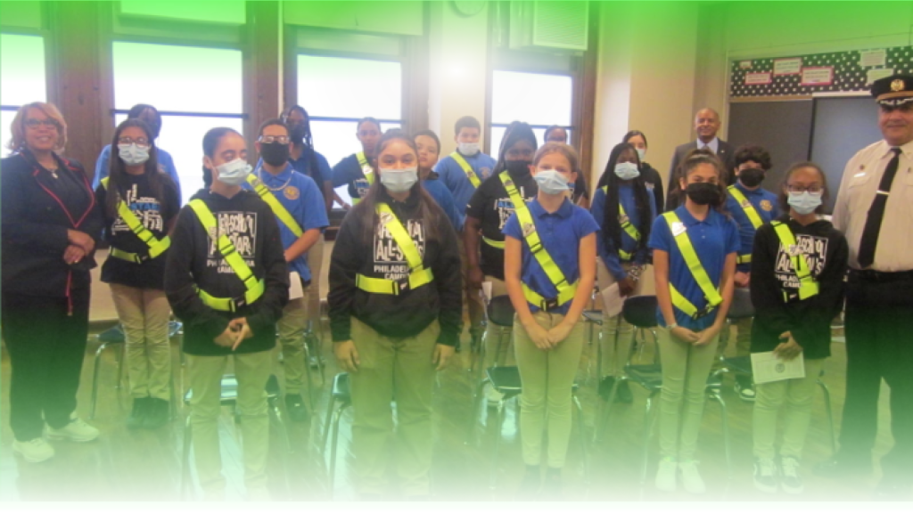 All of the Conwell Middle Magnet School AAA Safety Patrol members, along with the School’s Climate Specialist Mr. Washington, Principal Green, and special guest Captain Rosario of the 24th Police District of Philadelphia attended a ceremony to welcome this year’s new Safety Patrol members, where they took the Pledge of Safety. The ceremony took place on Monday, Oct. 24 at 9 a.m. The ceremony was held at Conwell Middle Magnet School in room 202.