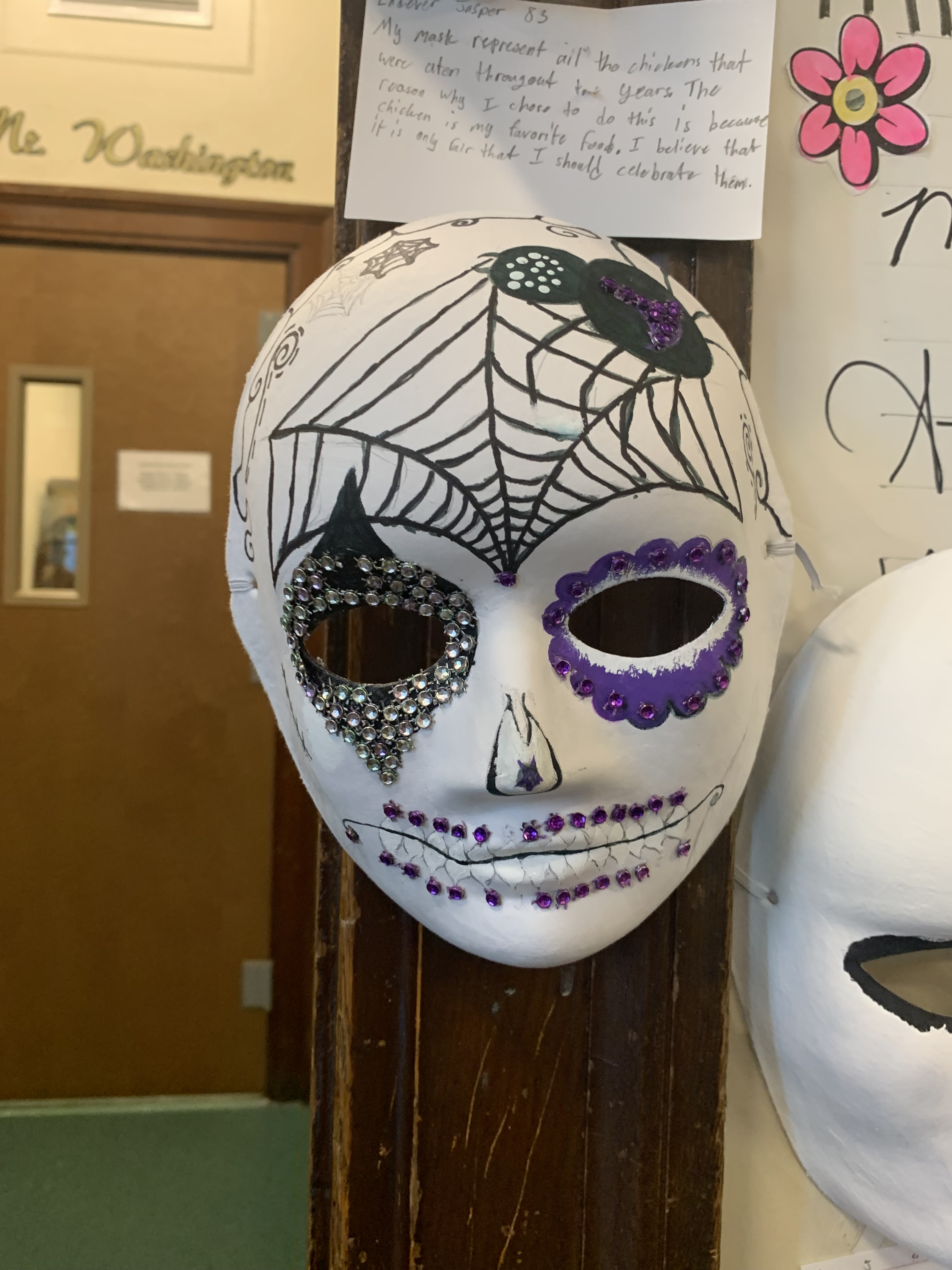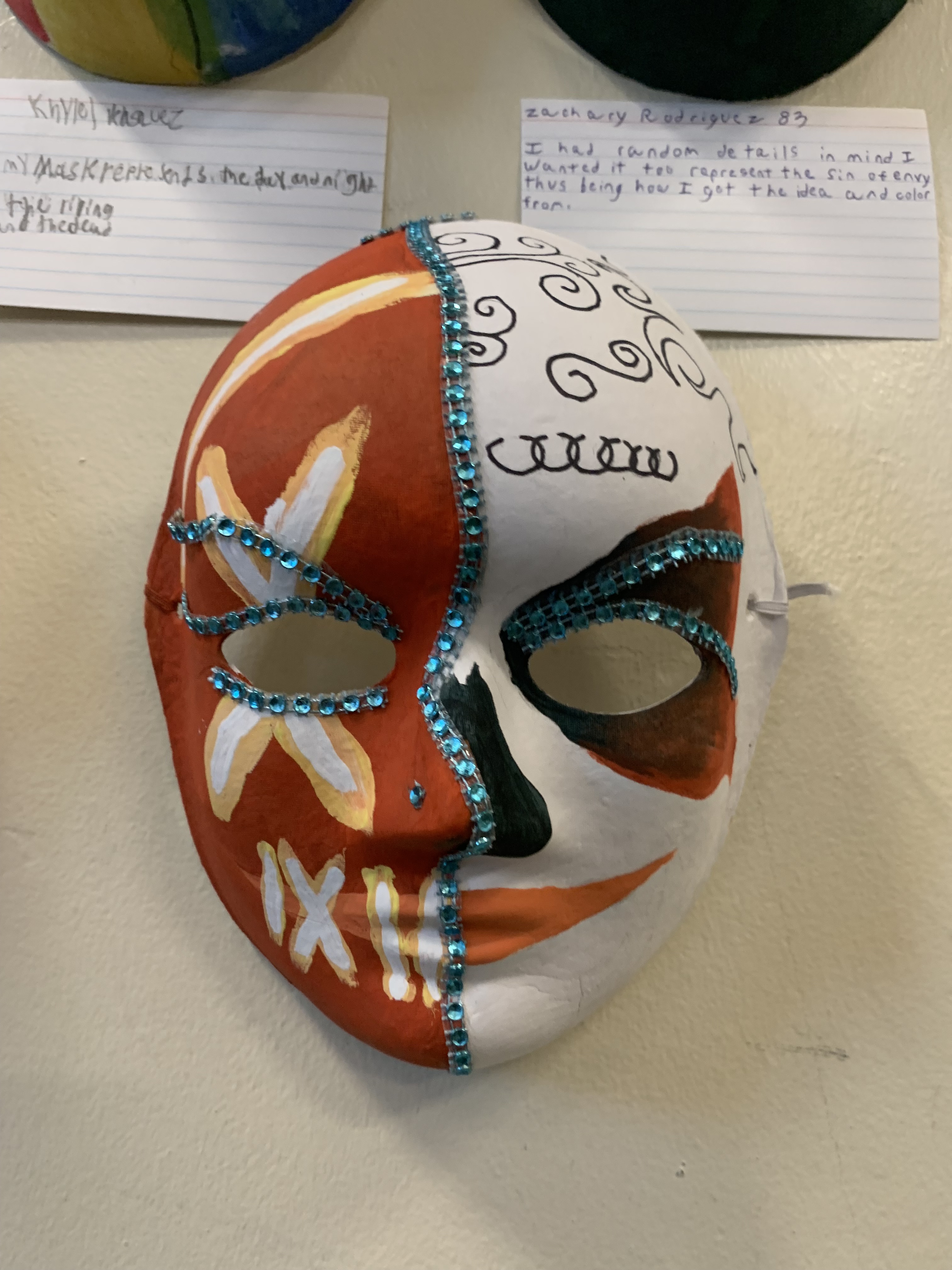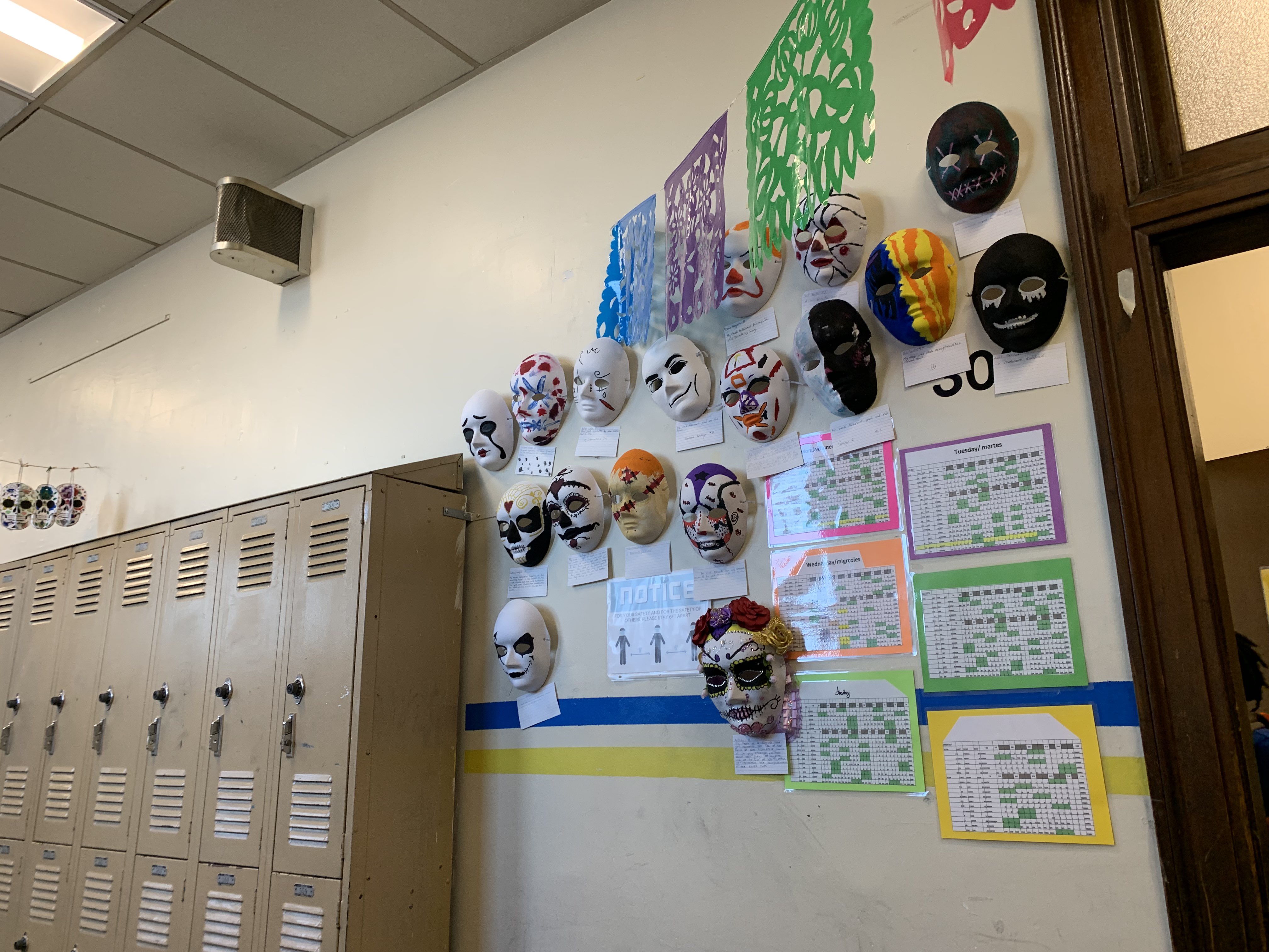 Anyone interested in seeing these works of art up close, can do so by visiting the third floor, outside Ms. De Jesus’s classroom. Just remember to appreciate the masks from a distance!