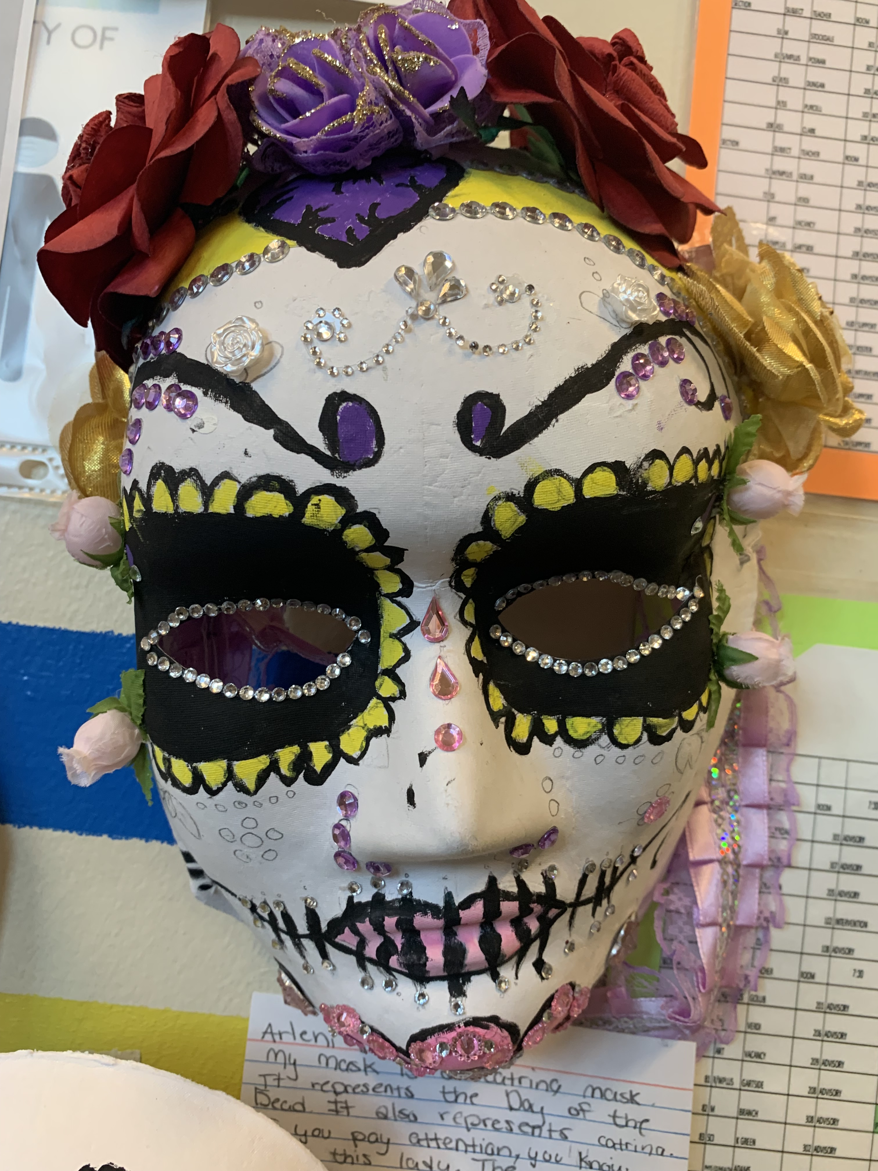 Ms. De Jesus said these paper masks represent a wealthy woman that is used in Mexican folklore to commemorate Dia de los Muertos.