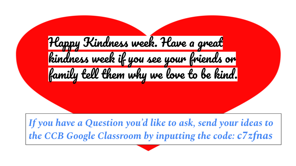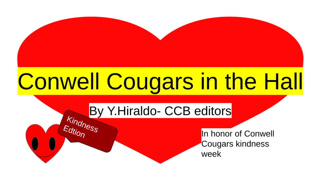Conwell Cougars Kids in the Hall Column: Kindness Week Edition Gallery Posted on November 16, 2022 by ccbstaff Edited By Y.Hiraldo-61 CCB Editor If you have any Question you would like to ask send your ideas to go to google classroom use code :c7zfnas If you would like to Donate to the Childen hospital ,vist this link down below ↓ Share this: Click to share on X (Opens in new window) X Click to share on Facebook (Opens in new window) Facebook Click to email a link to a friend (Opens in new window) Email Click to share on Pinterest (Opens in new window) Pinterest More Click to print (Opens in new window) Print Like Loading... Related