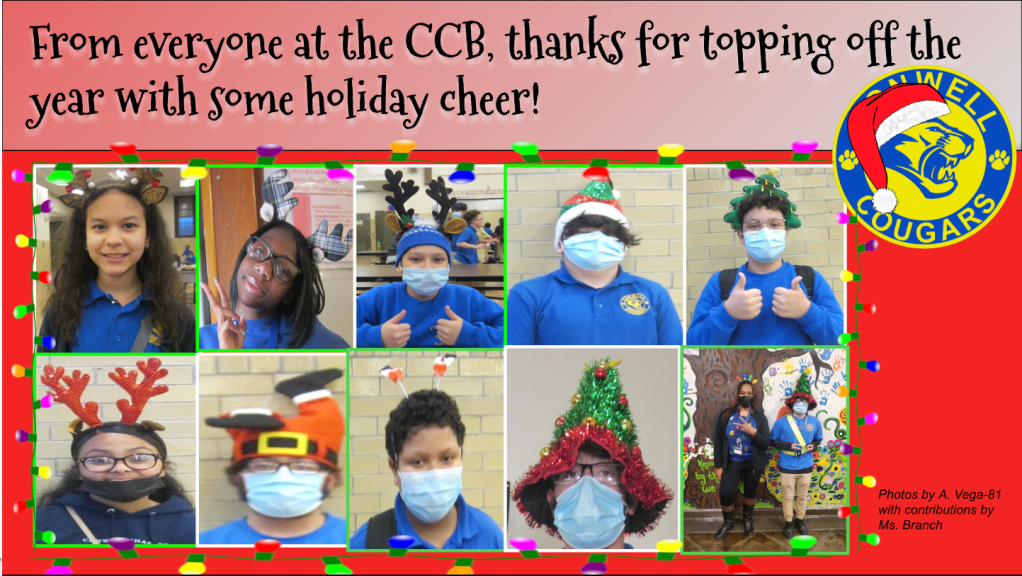 Please see DJ Dungan for your special holiday prize on behalf of the CCB! Make sure to visit ConwellCougars(Dot)Blog, for more Student celebrations, school stories, and more!