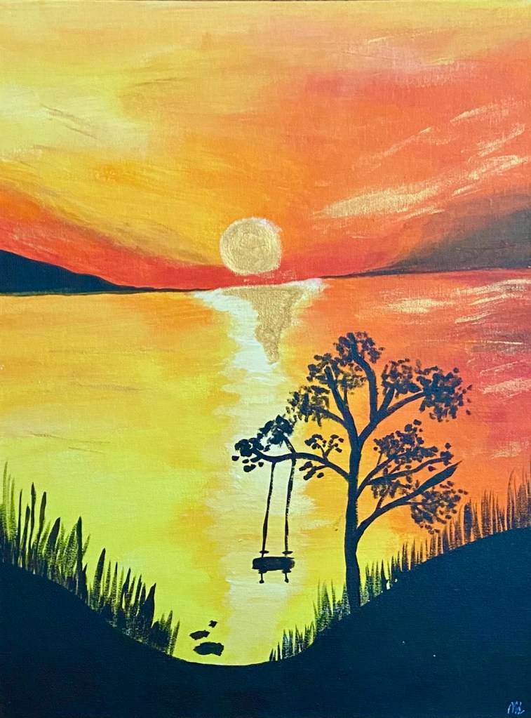 I originally painted this as a present for my mom on Eid. While I was painting this I thought of the progress I have made as an artist because I did a similar painting a year before this. Compared to my old painting I think I’ve progressed and I am proud of how my work looks now.